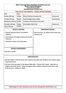 Weekend List Mount Carmel Church Sunday 10th August 2025
