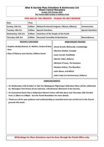 Weekend List Mount Carmel Church Sunday 12th October 2025