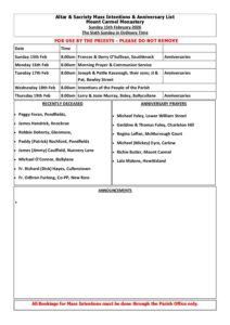 Weekend List Mount Carmel Church Sunday 15th February 2026 2026-02-13T09:31:51+00:00
