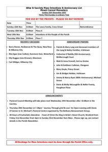 Weekend List Mount Carmel Church Sunday 16th November 2025