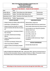 Weekend List Mount Carmel Church Sunday 18th January 2026