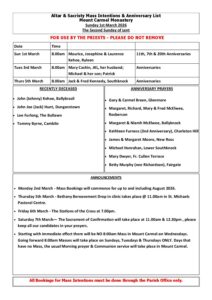Weekend List Mount Carmel Church Sunday 1st March 2026