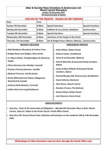 Weekend List Mount Carmel Church Sunday 7th December 2025