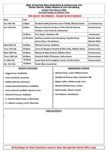 Weekend List Parish Church Sunday 15th February 2026